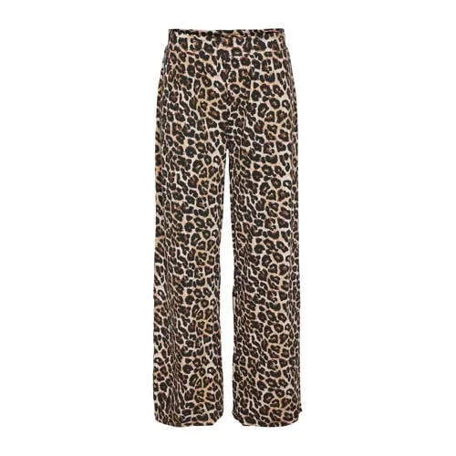 NOISY MAY Curve regular high waist casual broek met panterprint bruin