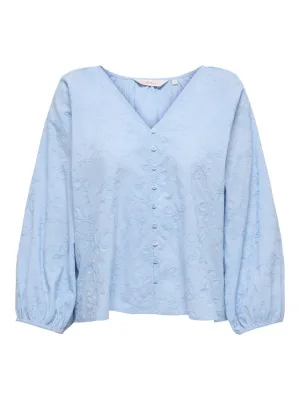 Only Onlzion 3/4 V-neck Emb Top Wvn Blouse 4918431 Soft Chambray