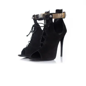 Giuseppe Zanotti x Anja Rubik Zwarte suède gladiator sandaal