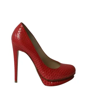 Nicholas Kirkwood Slangenhuid Geprinte Plateau Hakken in Rood Patentleer