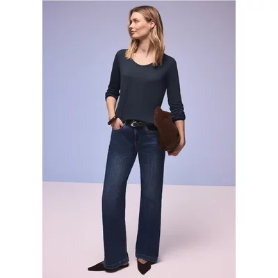 Street One Dames Shirt in cupro materiaalmix in Blauw