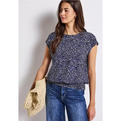 Street One Dames Blouse met gesmokte zoom in Blauw