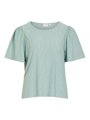 WE Fashion – Dames top met broderie anglaise – Regular fit – Pastelblauw – Katoen –