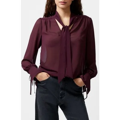 French Connection Georgette L/s Tie Nk Blouse Burgundy Red
