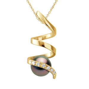 Hangertje Spiraal Diamanten 0,06 Ct – Kwaliteit HSI – Geel Goud – Echte Gecultiveerde Tahiti Parel Rond 7-8 mm