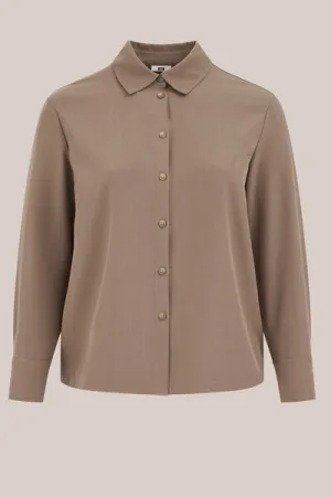 WE Fashion – Dames wide leg pantalon met linnenlook – Regular fit – Greige – Viscose –