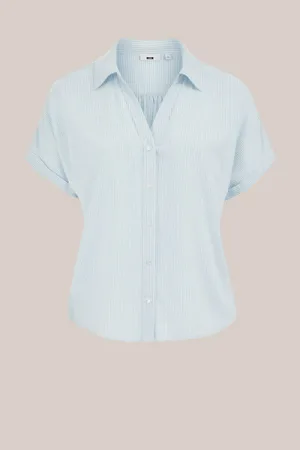 WE Fashion – Dames blouse van linnenmix – Regular fit – Lichtblauw – Livaeco™ Viscose –
