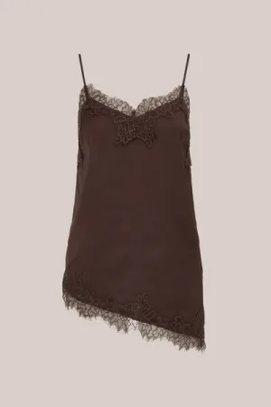 WE Fashion – Dames asymmetrisch singlet met kant – Regular fit – Donkerbruin –