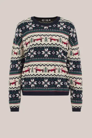 WE Fashion – Dames trui met print – Regular fit – Marineblauw – Katoen –