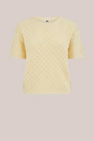 WE Fashion – Dames gebreide trui met open structuur – Curve – Regular fit – Lichtgeel – Biologisch katoen – Plus Size