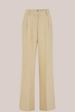 WE Fashion – Dames wide leg pantalon met krijtstreep – Regular fit – Beige – Viscose –