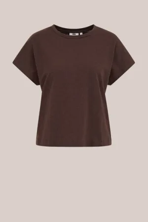 WE Fashion – Dames T-shirt – Regular fit – Donkerbruin – Katoen –