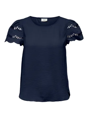 JDY JDYHANNAH LIFE S/S LACE TOP WVN Dames Top – Black Iris
