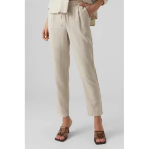 VERO MODA straight fit broek VMJESMILO met linnen beige
