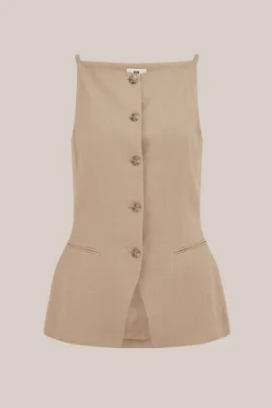 WE Fashion – Dames blouse van linnenmix – Regular fit – Beige – Livaeco™ Viscose –