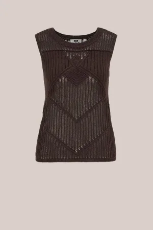 WE Fashion – Dames ajour top met glittergaren – Regular fit – Donkerbruin – LENZING™ ECOVERO™ viscose –