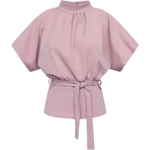 Smashed Lemon Blouse met tie-dye look en ruches in bruin en roze |