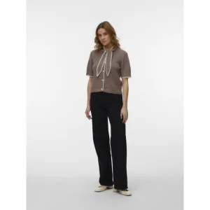 Vero Moda Vmkashia ss tie detail knit cardigan taupe