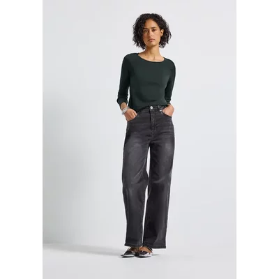 Street One Studio Dames Broek met wijde pijpen in visgraatmotief in Zwart