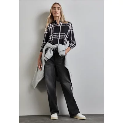 Street One Dames Geruite blouse met ruches in Zwart