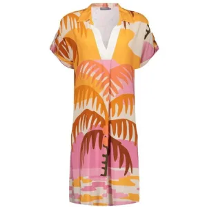 Geisha dress palmtree 67357-70 420 pink/coral