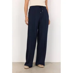 Soyaconcept Wide leg high waist casual broek marineblauw