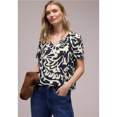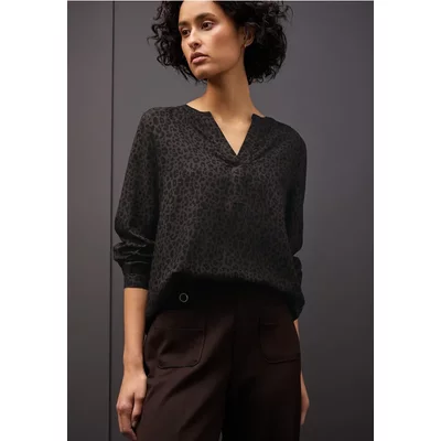 Street One Dames Split hals leo blouse in Bruin