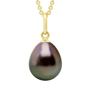 Hanger Gearticuleerde Draad Geel Goud 375 en Echte Gecultiveerde Tahiti Parels Pear 9-10 mm