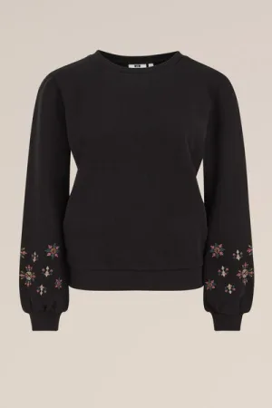 WE Fashion – Dames Sweater met embroideries – Regular fit – Zwart – Katoen –