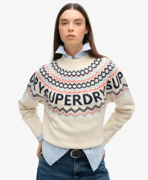 Superdry Vrouwen Fair Isle Trui met Logo Crème