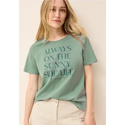 Cecil Dames Shirt met korte mouwen, capuchon en tekst in Blauw