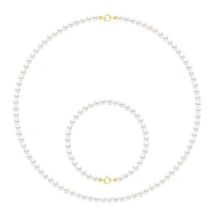 Set Halsketting Armband bestaat uit: Halsketting van Echte Gecultiveerde Zoetwaterparels Rond 4-5 mm