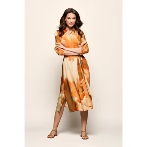 Smashed Lemon Tuniek top met blad print en strikdetail in oker geel |