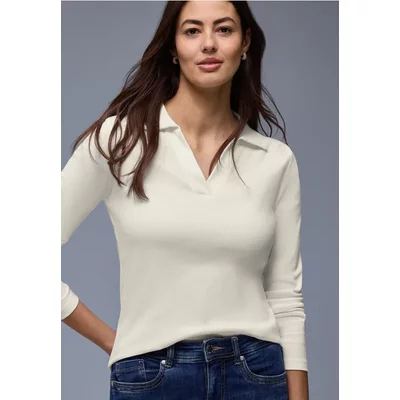 Street One Dames Shirt met gespleten hals in Zwart