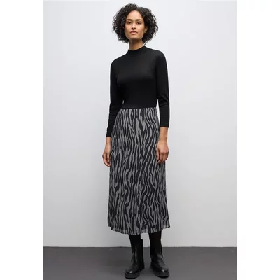 Street One Dames Geplooide chiffon jurk in Zwart