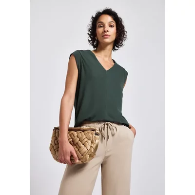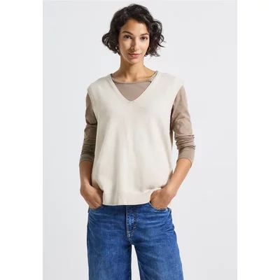 Street One Dames Mouwloze trui met V-hals in Beige