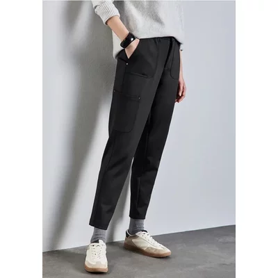Street One Dames Jersey keperstof cargo broek in Zwart