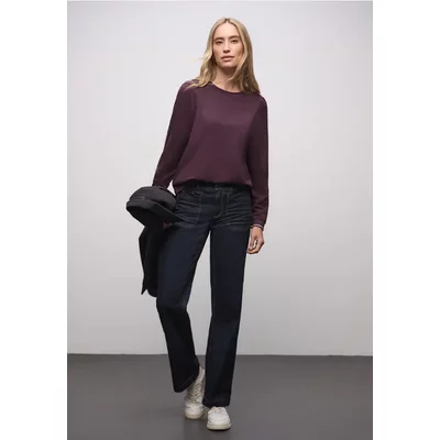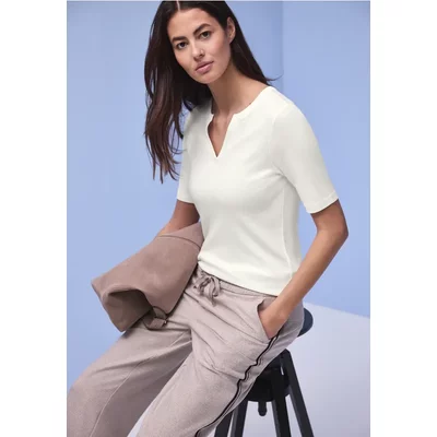 Street One Dames Zacht Shirt met geribde details in Rood
