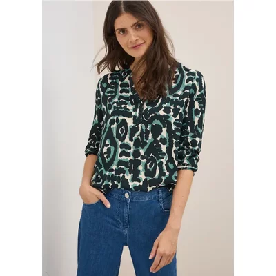 Cecil Dames 3/4 mouw blouse van linnenmix in Groen