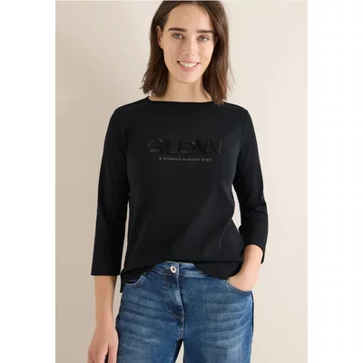 Cecil Dames Shirt met korte mouwen, capuchon en tekst in Beige