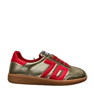 Glitter platform pumps van stof in goud