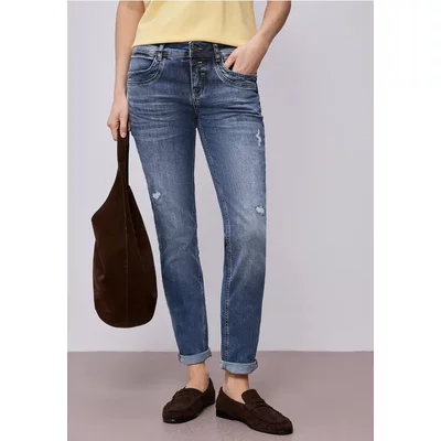 Street One Dames Seersucker paperbag-broek in Blauw