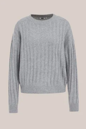 WE Fashion – Dames trui met structuur – Regular fit – Lichtgrijs –