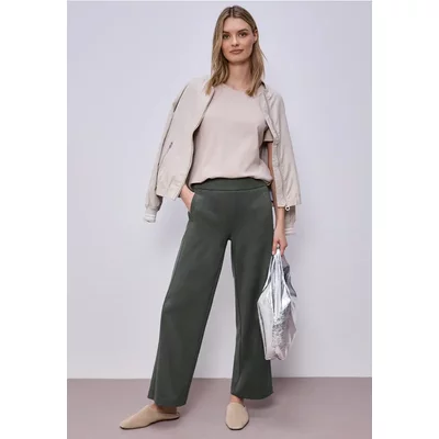Street One Dames Wide Legs jersey broek in Groen