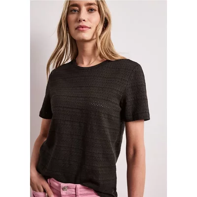 Street One Dames Zacht Shirt met geribde details in Zwart