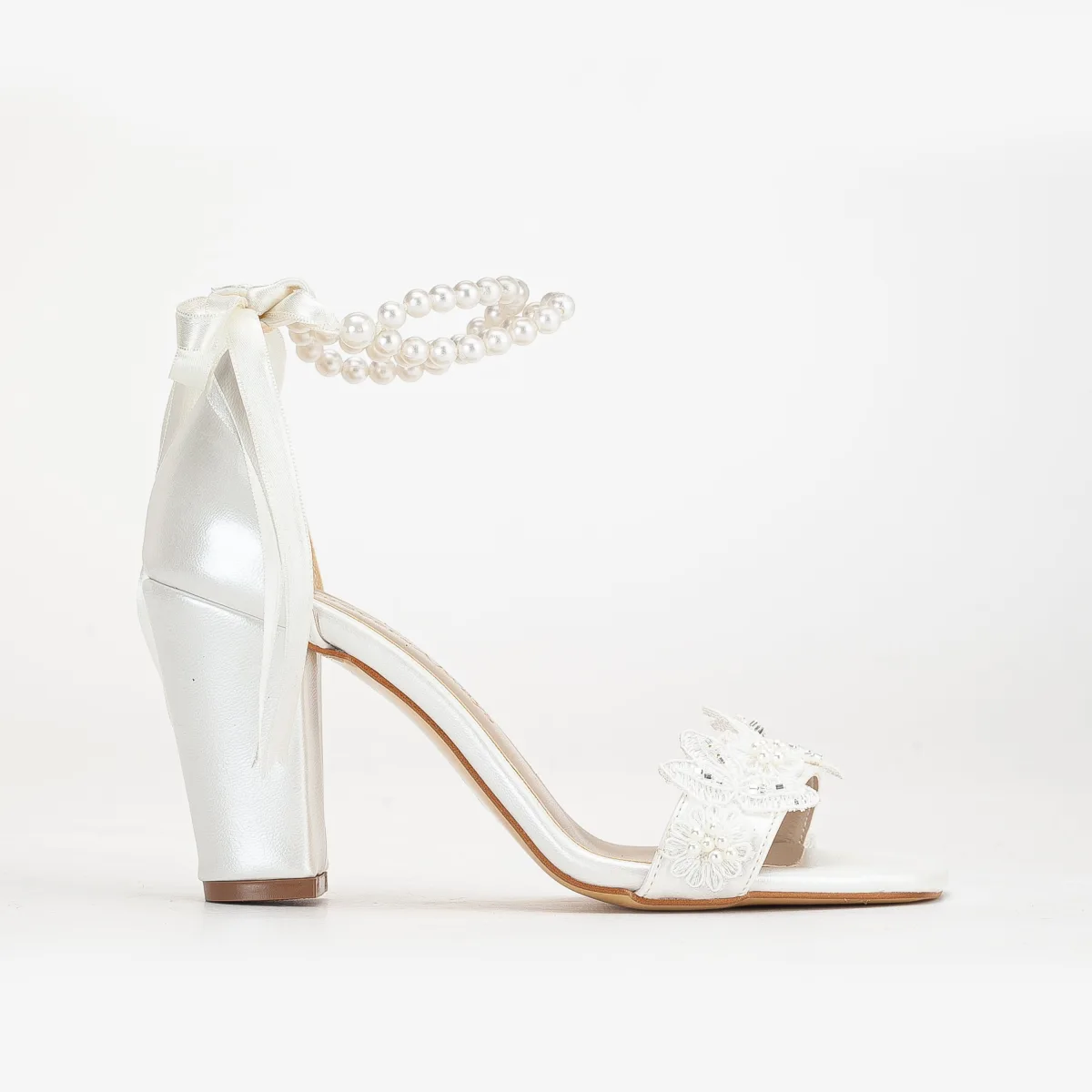 Helene Lace Bridal Heeled Sandalen with Pearls