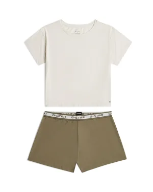 G-STAR Pyjama ‘Tee and Short Pyjamas Set’ olijfgroen / gemengde kleuren / wolwit