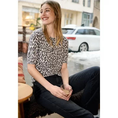 Street One Studio Dames Mesh jurk met leoprint in Bruin