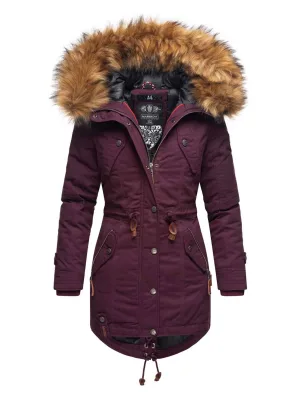 Marikoo dames winterjas met afneembare imitatiebontkraag & taillekoord