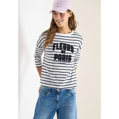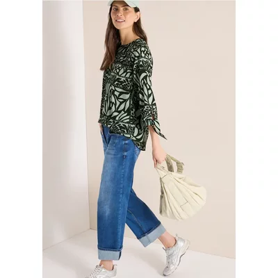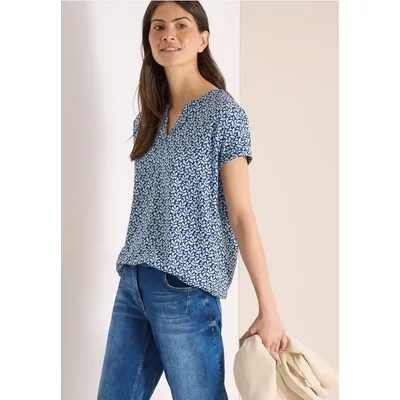 Cecil Dames Gedessineerde blouse met gespleten hals in Blauw